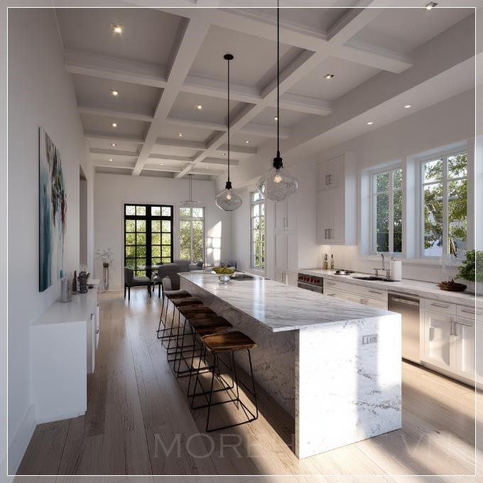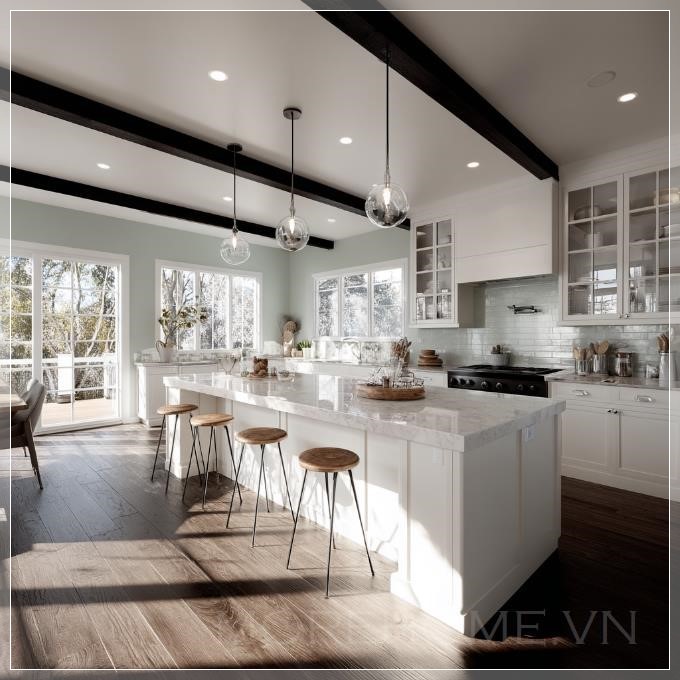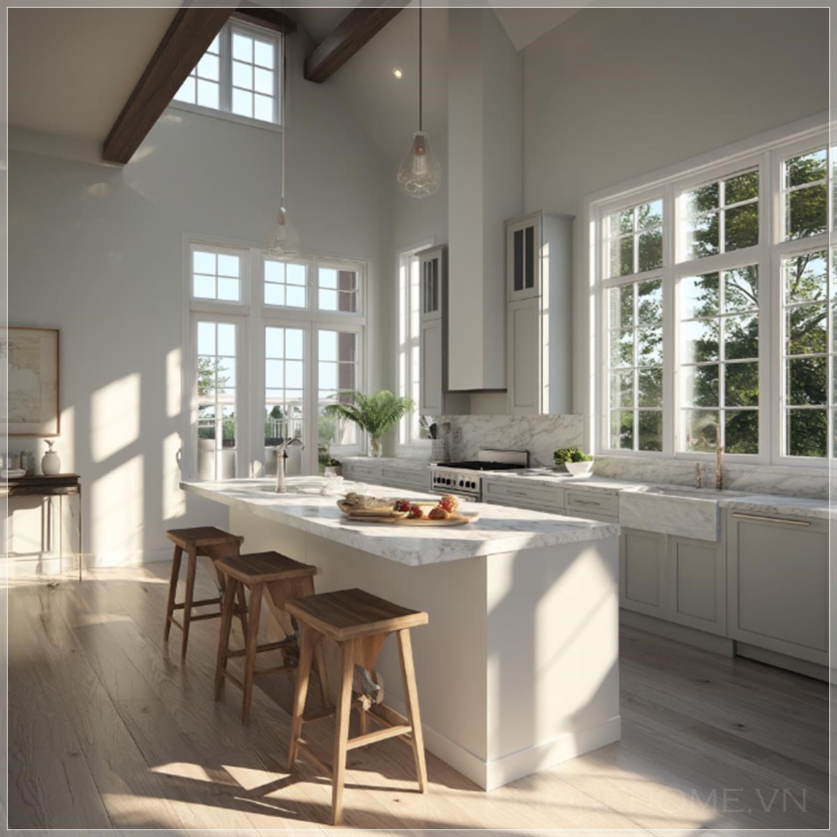 Ánh sáng tự nhiên tràn ngập qua những ô cửa sổ rộng lớn, phản chiếu trên bề mặt đá cẩm thạch bóng loáng của quầy bếp. Không gian hiện đại yet ấm cúng này không chỉ là trái tim của ngôi nhà mà còn là tâm điểm thu hút trong mỗi buổi open house. Hãy cùng khám phá cách những chi tiết hoàn hảo trong căn bếp có thể biến một ngôi nhà thông thường thành một tài sản bất động sản đáng mơ ước.