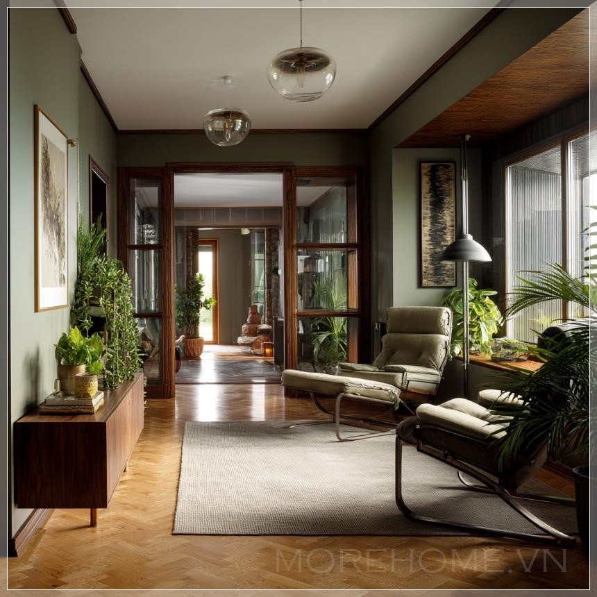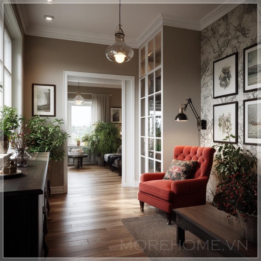 Về mặt thẩm mỹ, tầm nhìn từ phòng khách ra sảnh chính tạo nên chiều sâu thị giác thú vị. Thay vì bị giới hạn trong một không gian khép kín, mắt người có thể du ngoạn tự do, tạo cảm giác rộng rãi và thoáng đãng. Điều này đặc biệt quan trọng đối với những ngôi nhà có diện tích khiêm tốn, giúp tối ưu hóa cảm nhận về không gian sống.