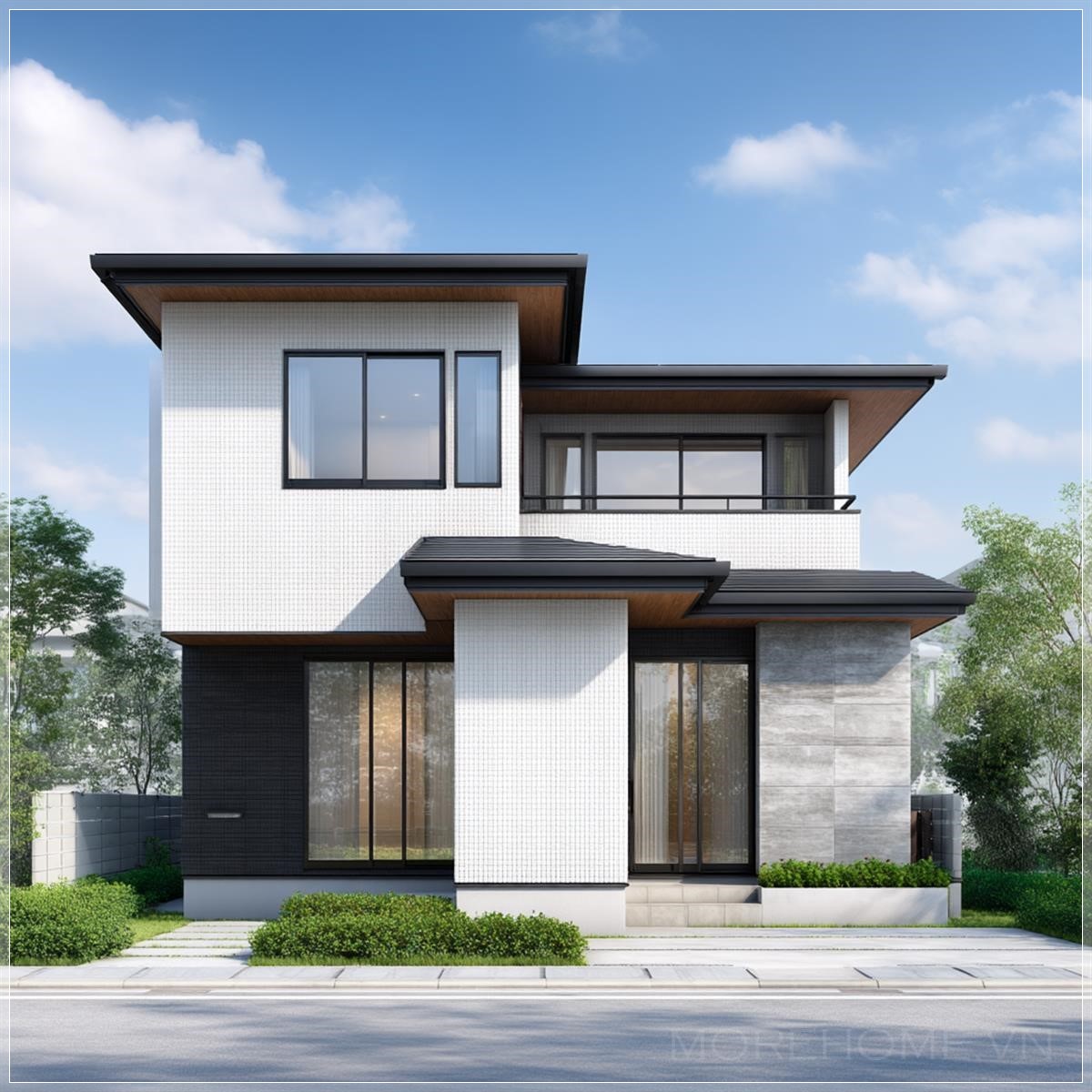 Dưới bầu trời trong xanh của một buổi chiều mùa hè, ngôi nhà Nhật Bản hiện đại hiện lên như một tác phẩm nghệ thuật được chạm khắc tinh tế giữa khung cảnh ngoại ô yên bình. Những đường nét sắc sảo, mái nhà phẳng hoặc dốc nhẹ theo một hướng, tất cả đều thể hiện triết lý sống tối giản mà người Nhật đã ấp ủ qua nhiều thế kỷ - "less is more".