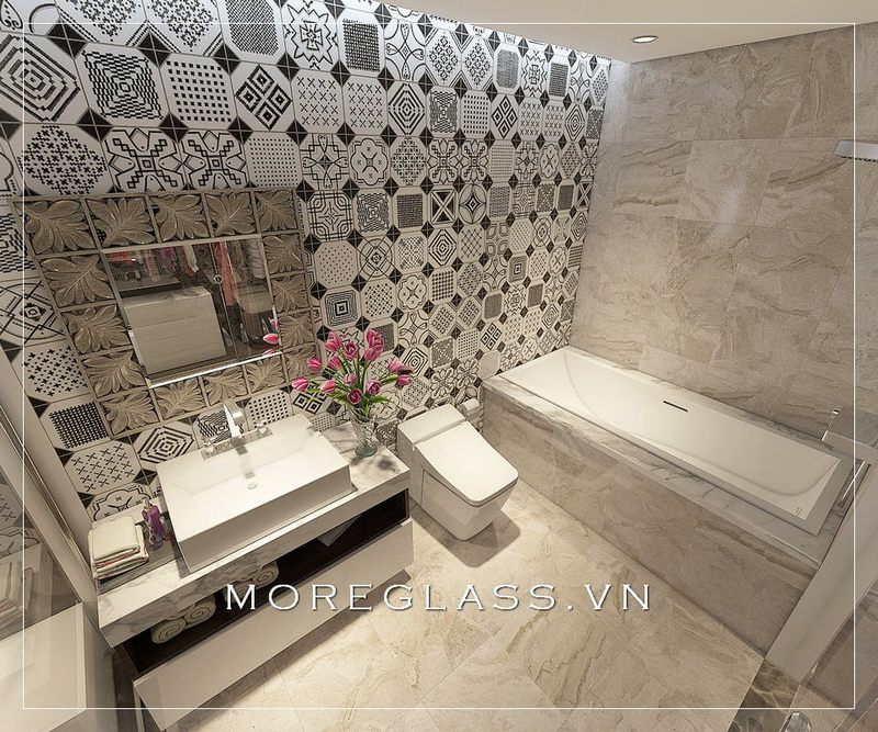 Đón nhận ánh sáng không khí tự nhiên bên ngoài thông qua cửa kính thông thoáng giúp phòng tắm luôn khô ráo tránh ẩm mốc