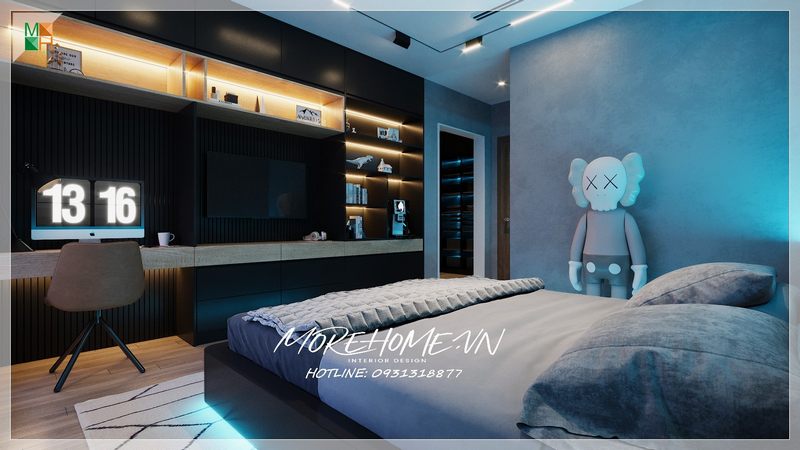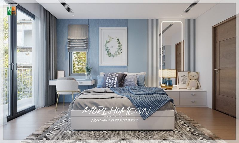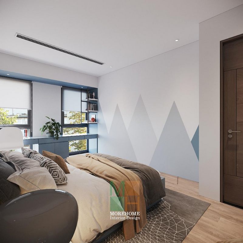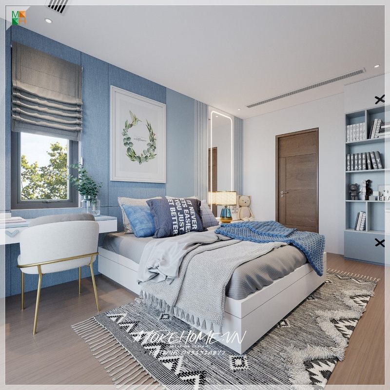 Với tone màu xanh chủ đạo sẽ dành cho các bé trai đem đến sự nam tính và hiện đại cho không gian phòng ngủ