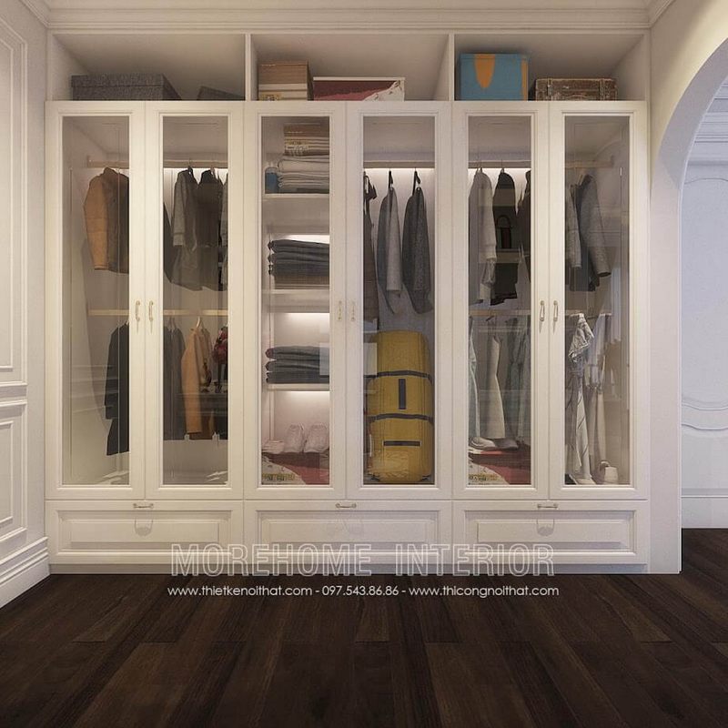 Mẫu thiết kế tủ áo cánh mở hiện đại cho phòng ngủ Master tại biệt thự cao cấp