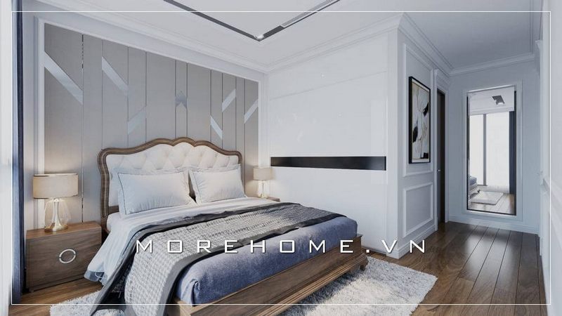 Phòng ngủ hiện đại được thiết kế với gam màu thanh nhã và sắc nét.