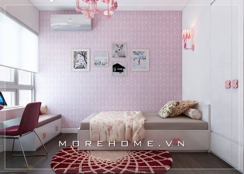 Nội thất phòng ngủ trẻ em trong căn hộ chung cư hiện đại được thiết kế theo phong cách thông minh, giúp tiết kiệm được diện tích.