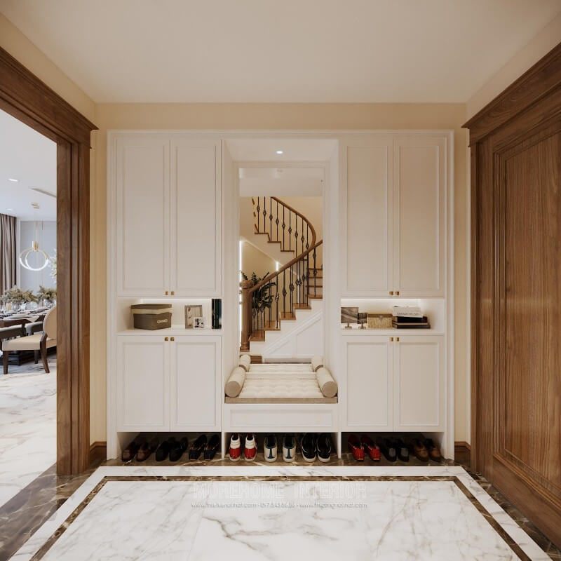 Kệ tủ giày thiết kế hiện đại với tone màu trắng tinh tế sẽ là món đồ trang trí làm nổi bật nội thất của bạn.