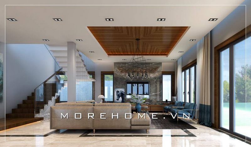 . Một mẫu thiết kế phòng khách sang trọng và đẳng cấp cho biệt thự được tạo ra bởi sự kết hợp hài hòa giữa các màu nội thất độc đáo, tạo nên một không gian thu hút.