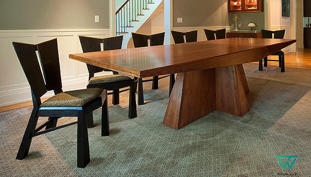 Bàn ghế ăn gỗ óc chó với hình khối đặc biệt